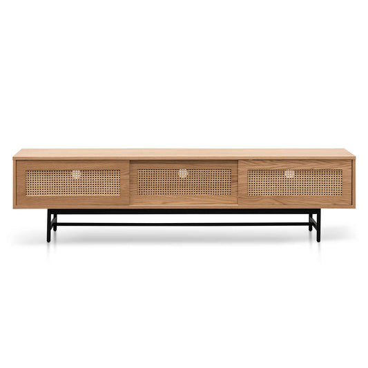 2m Natural Oak TV Entertainment Unit - Rattan Doors