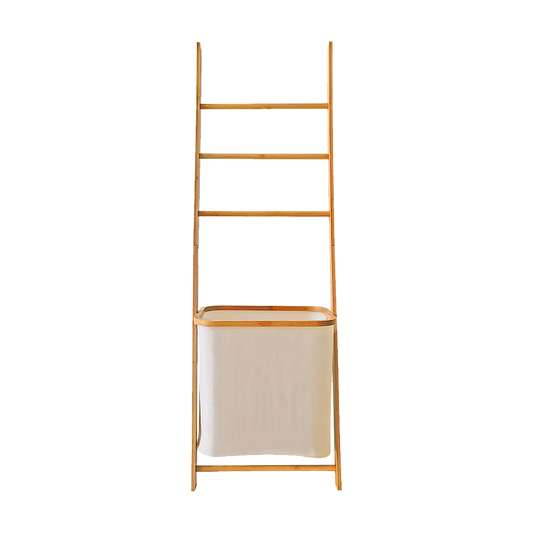 Wall Leaning Ladder Shelf with Laundry Basket Clothes Hamper Bath Towel Rack