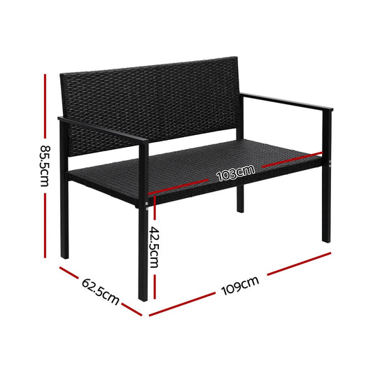 Gardeon Outdoor Garden Bench Seat Rattan Chair Steel Patio Furniture Park Black