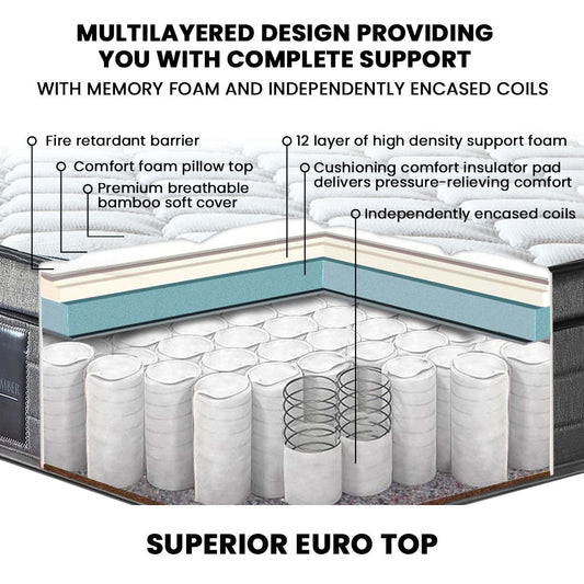 Mattress Euro Top Queen Size Pocket Spring Coil with Knitted Fabric Medium Firm 34cm Thick