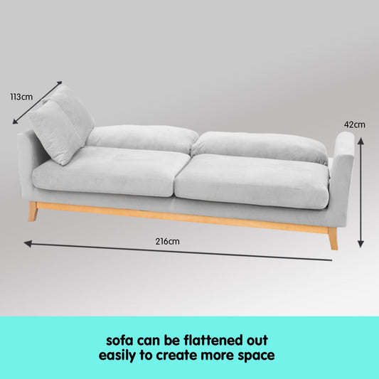 Sarantino 3 Seater Linen Couch Sofa Bed Lounge Futon - Light Grey