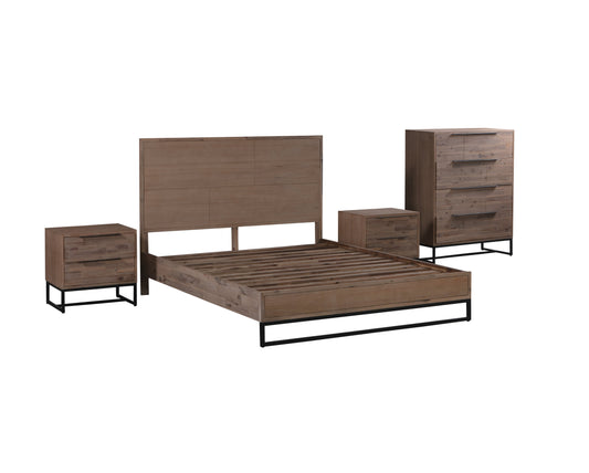 4 Pieces Bedroom Suite made in Solid Wood Acacia Veneered Queen Size Oak Colour 1XBed, 2X Bedside Table & 1XTallboy