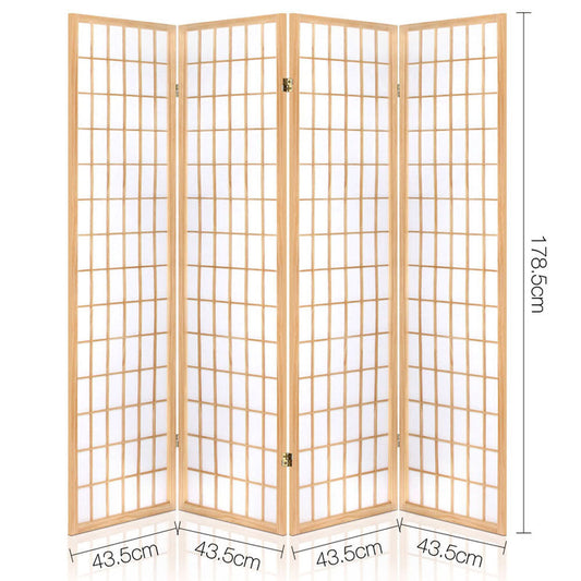 Artiss 4 Panel Room Divider Screen 174x179cm Natural