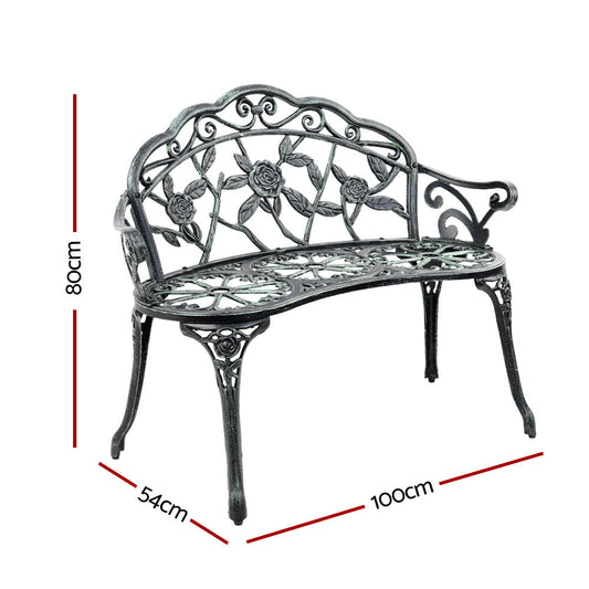 Gardeon Outdoor Garden Bench Seat 100cm Cast Aluminium Patio Chair Vintage Green