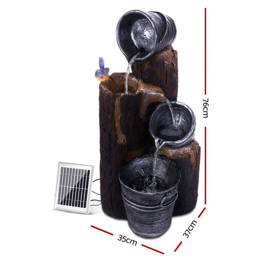 Gardeon Solar Water Feature Cascading Fountain 3-Tier Bucket LED light Bird 76CM