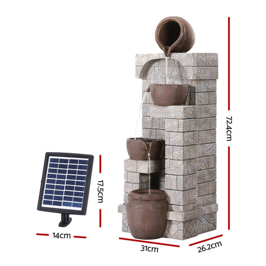 Gardeon Solar Fountain Water Feature Outdoor Indoor 4-Tier Brown