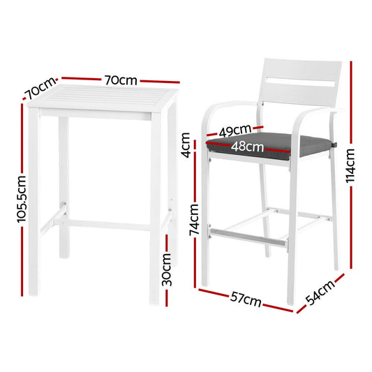 Gardeon Outdoor Bar Set Stools 3-Piece Dining Chairs Table Patio Aluminium Bistro Set