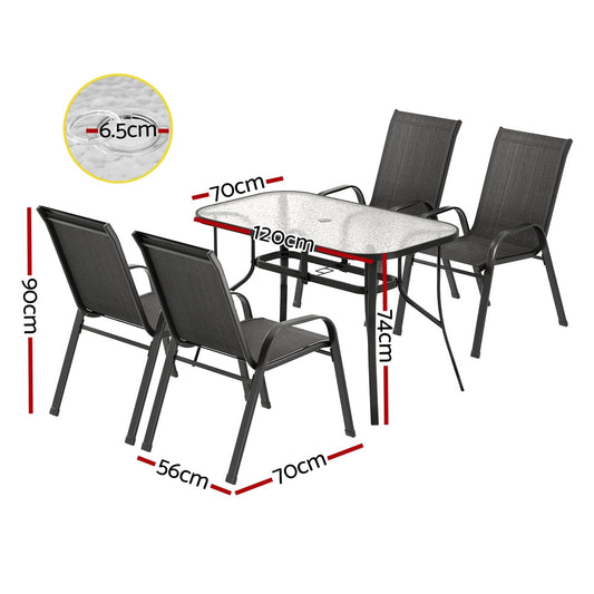 Gardeon 5PC Outdoor Dining Set Table and Chairs Patio Furniture Bistro Set Garden Black