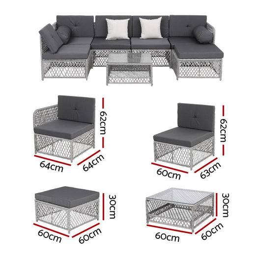 Gardeon 6 Seater Outdoor Sofa Set 7PCS Table Chair Set Garden Rattan Patio Furniture