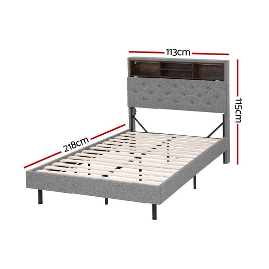 Artiss Bed Frame King Single Size LED Mattress Base Platform with Storage Shelf Hidden Storage Box Grey