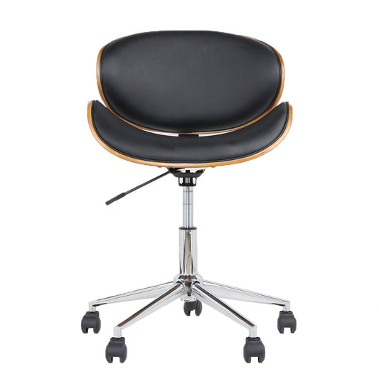 Wooden & PU Leather Office Desk Chair - Black
