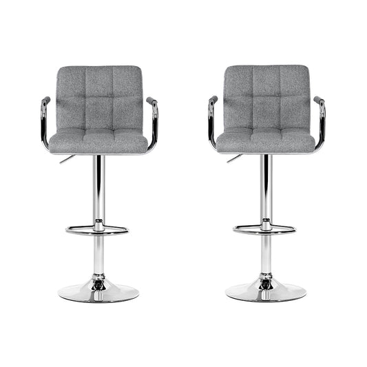 Artiss 2x Bar Stools Kitchen Bar Stool Chairs Gas Lift Swivel Fabric Chrome Grey