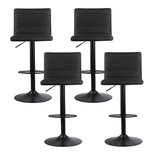 Set of 4 Faux Linen Bar Stools - Black