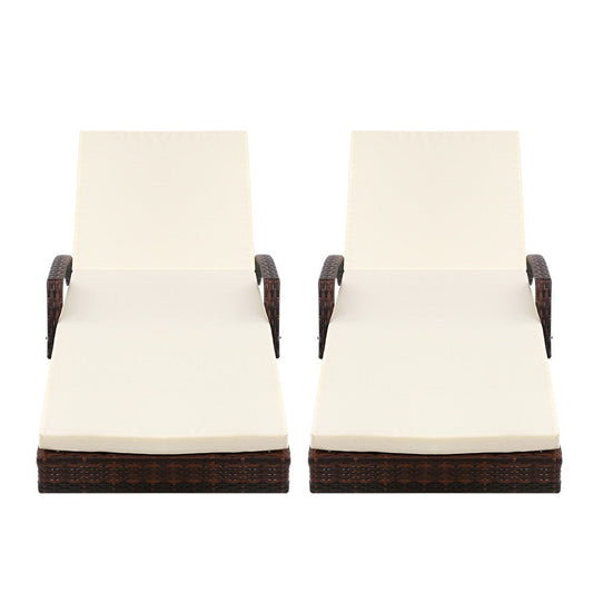 Gardeon Set of 2 Sun Lounge Outdoor Furniture Day Bed Rattan Wicker Lounger Patio