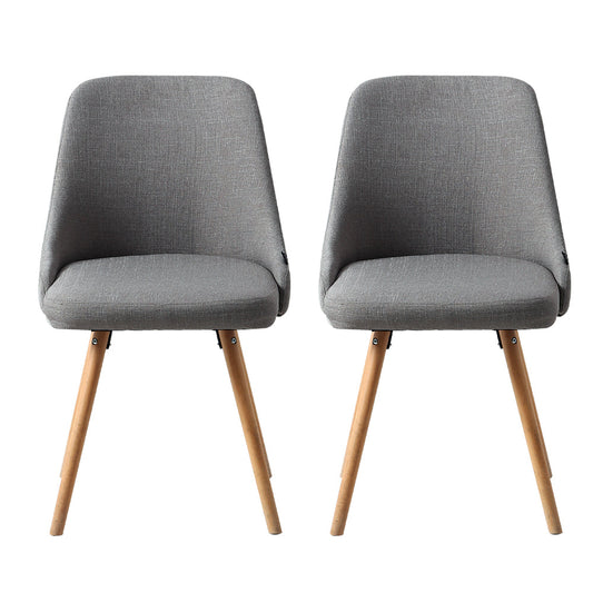 Set of 2 Replica Dining Chairs Beech Wooden Timber Chair Kitchen Fabric Grey
