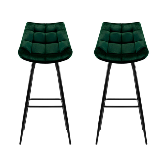 2X Velvet Bar Stools with Studs Trim Wooden Legs Tufted Dining Chairs Kitchen