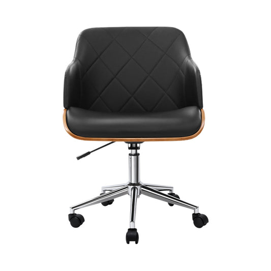 Wooden Office Chair Computer PU Leather Desk Chairs Executive Black Wood