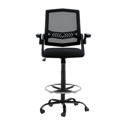 Artiss Office Chair Veer Drafting Stool Mesh Chairs Flip Up Armrest Black