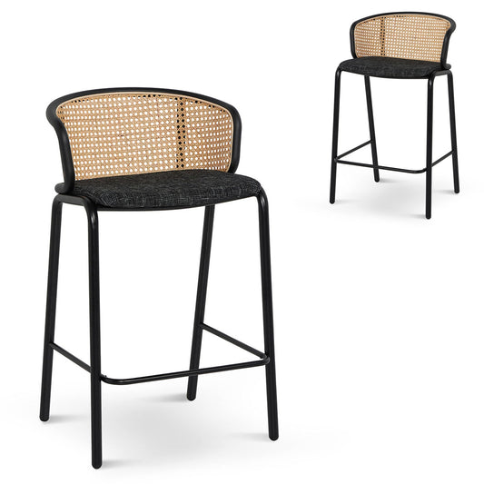 Set of 2 - Florine 65cm Fabric Bar Stool - Black Legs