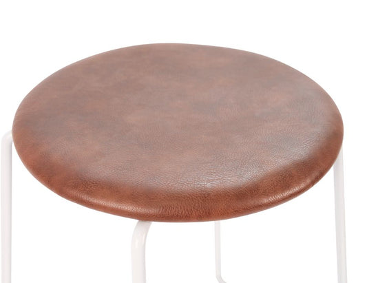 Hugo Bar Stool - White - Vintage PU Seat - 67cm Kitchen Height - Vintage Tan Seat