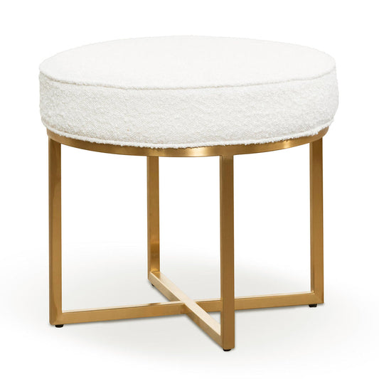 Ivory White Boucle Ottoman - Brushed Gold Base