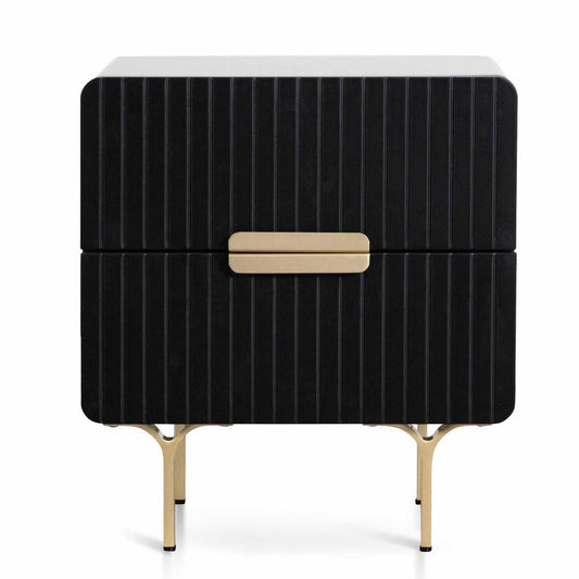 Matte Black Bedside Table - Brass Legs and Handle