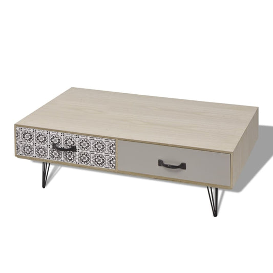 Coffee Table Solid Wood With Carved Drawer 100X50X40 Cm