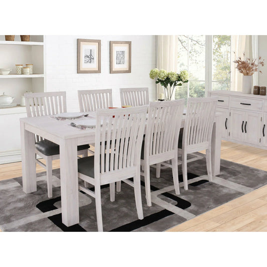 Francia Mountain Ash Table with 6 Chairs Dining Set - Brushed White Wash