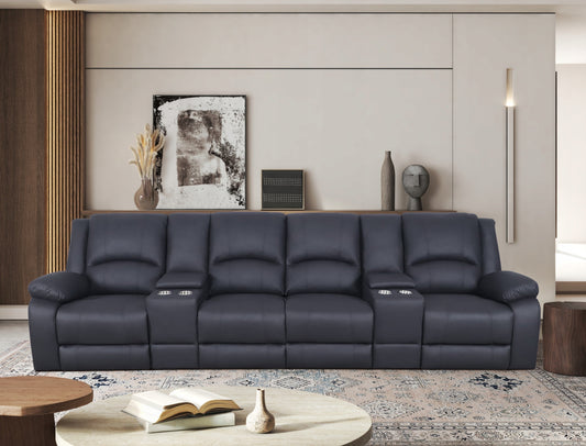 Presscot Rhino Fabric 4 Seater Recliner Electric Sofa - Onyx