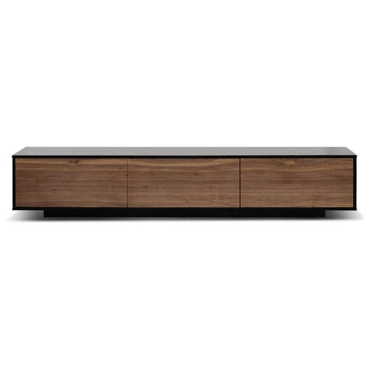 2.3m Wooden Entertainment Unit - Black with Walnut Drawers
