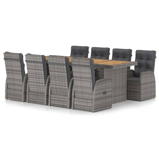 9 Piece Outdoor Dining Set With Cushions Poly Rattan Grey