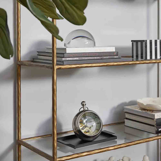 1.8m(H) Black Glass Shelving Unit - Black Frame