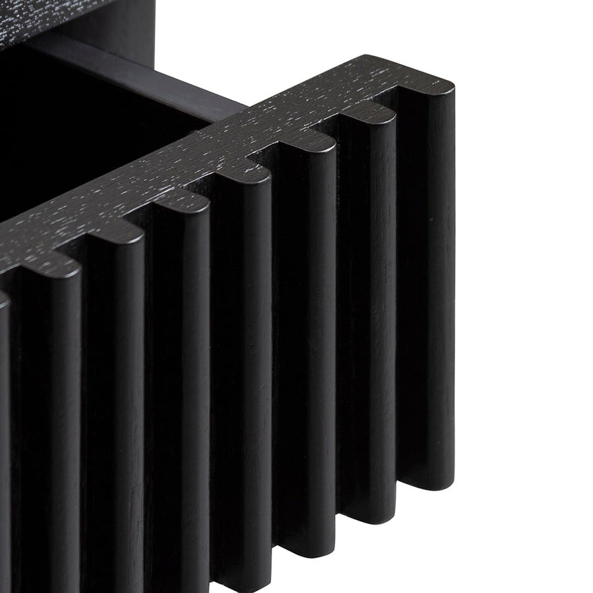 Engineered Wood Table top with ash veneer finish Solid wood drawer panel with slat pattern side Round solid wood legs 35 kg of weight limit Product requires minor assembly