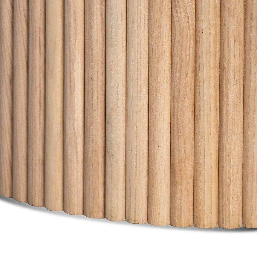 Oval-shaped marble top Base in engineered wood with solid wood strip Product is flat pack and requires two person assembly
