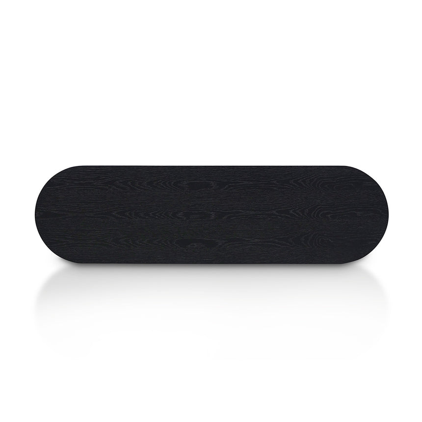 Engineered wood with durable veneer top Long, thick table top with a smooth edge 1 spherical wood leg and 1 set of U-shaped metal legs All-over oil-based black finish for wood texture Weight capacity: 50 kg Product is flat packed and requires two-person assembly