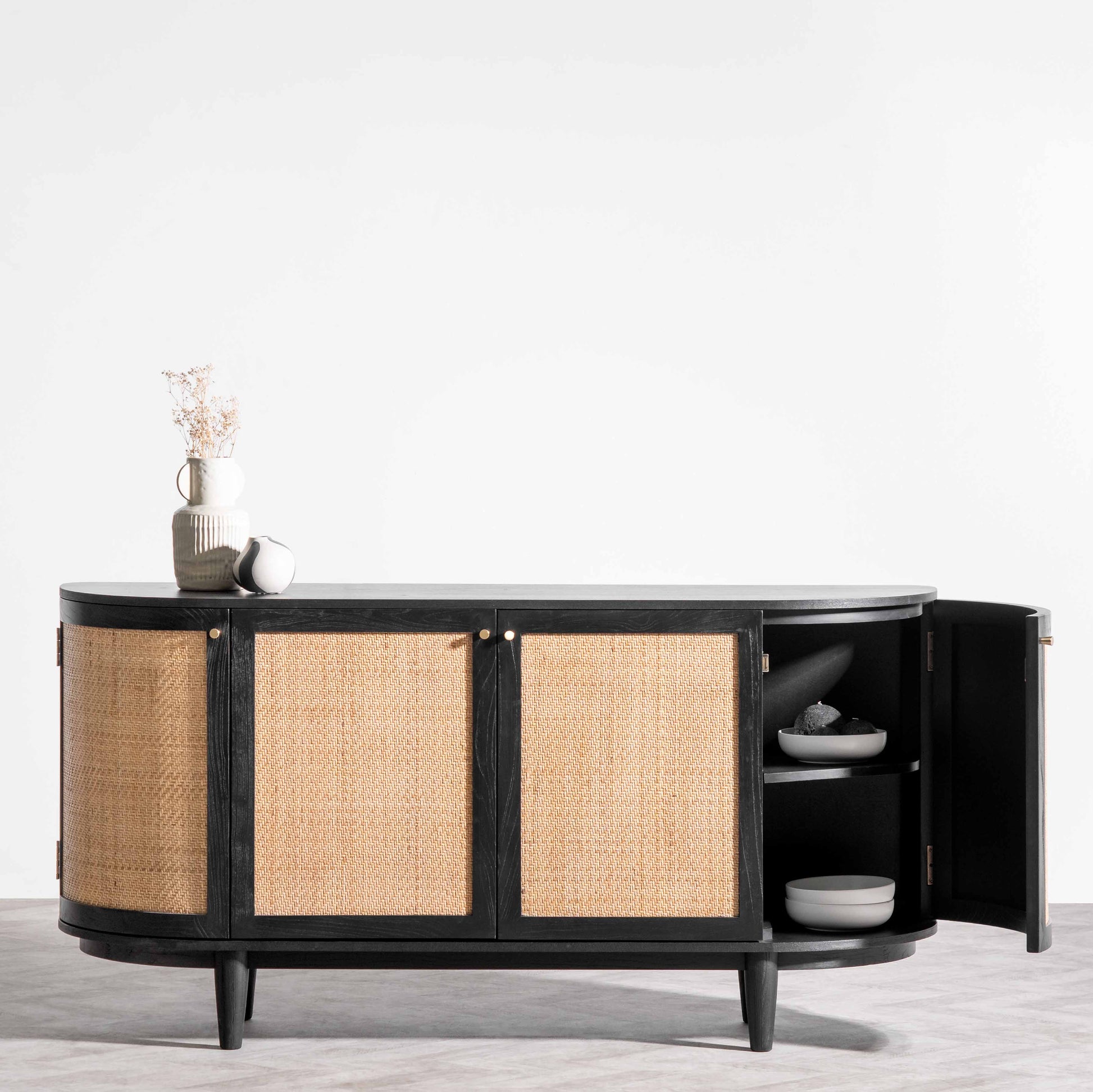 1.7m Black Elm Sideboard - Rattan Doors
