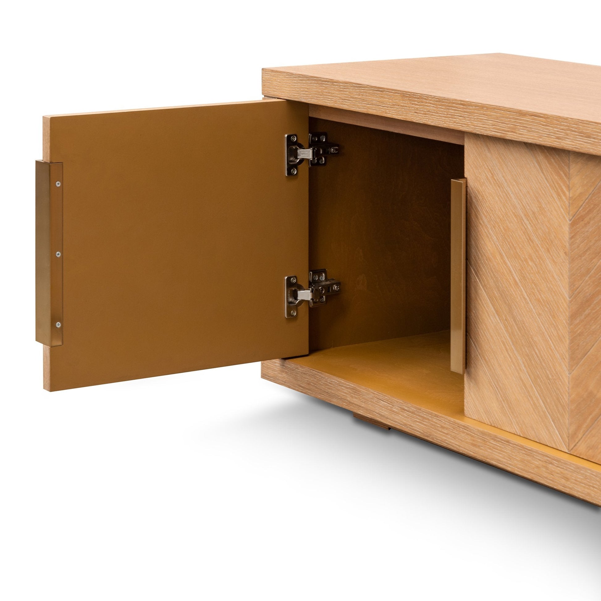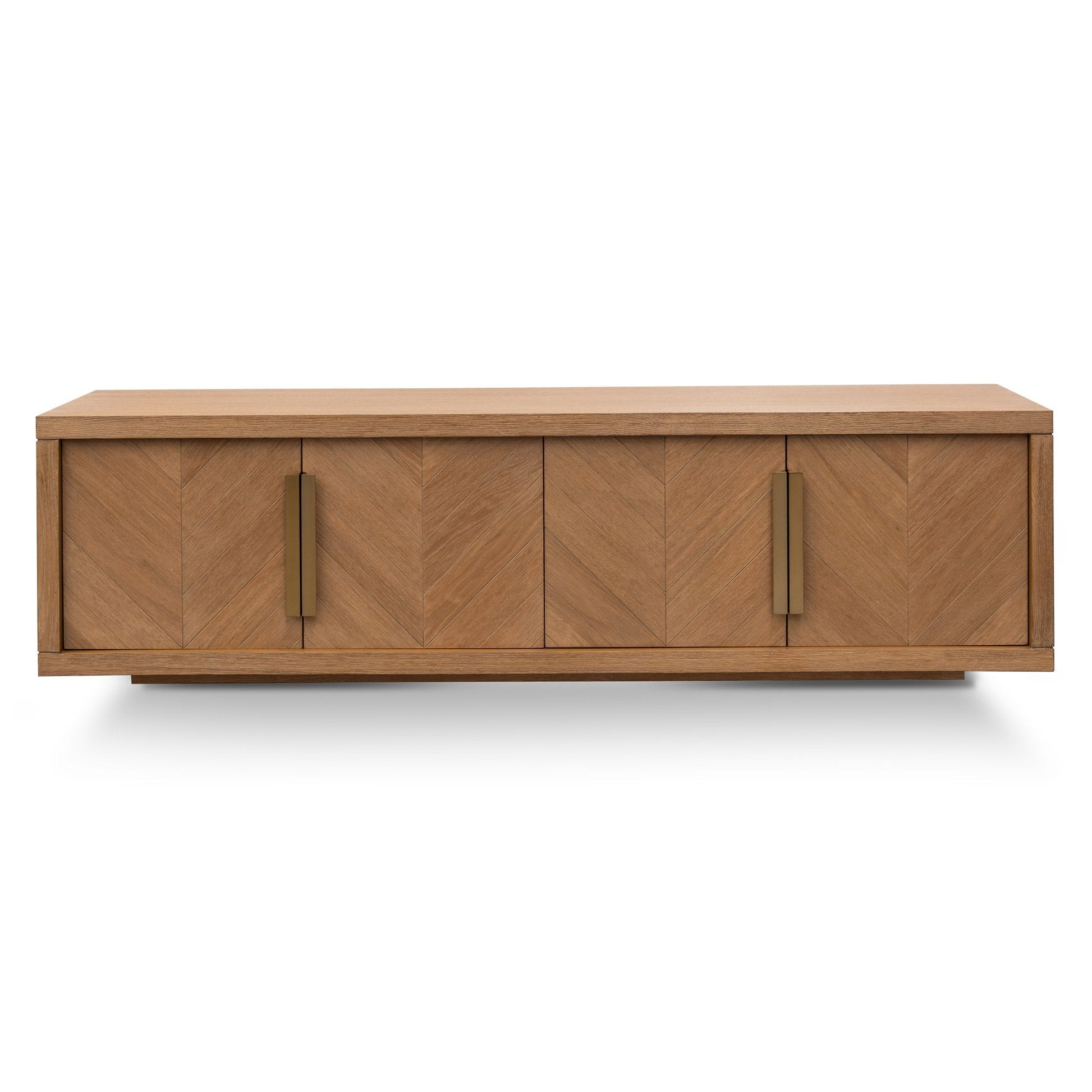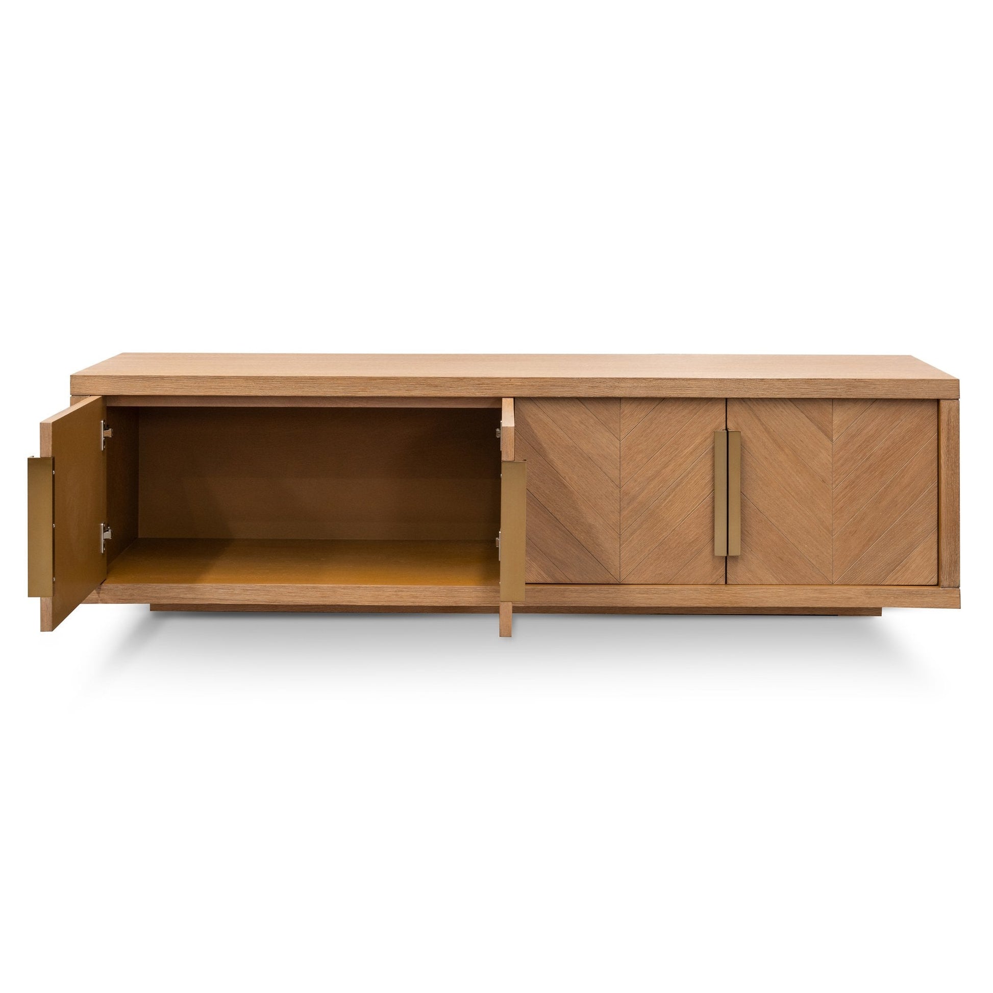 Revamp your entertainment space with the natural and chic design of the 1.8m TV Entertainment Unit - Dusty Oak with Gold Handle. Maintain an organised space with its endless storage system and inject a touch of contemporary design to your lounge style. Enhance your lounge's contemporary style with the chic Dusty oak TV unit, offering both natural beauty and ample storage solutions.