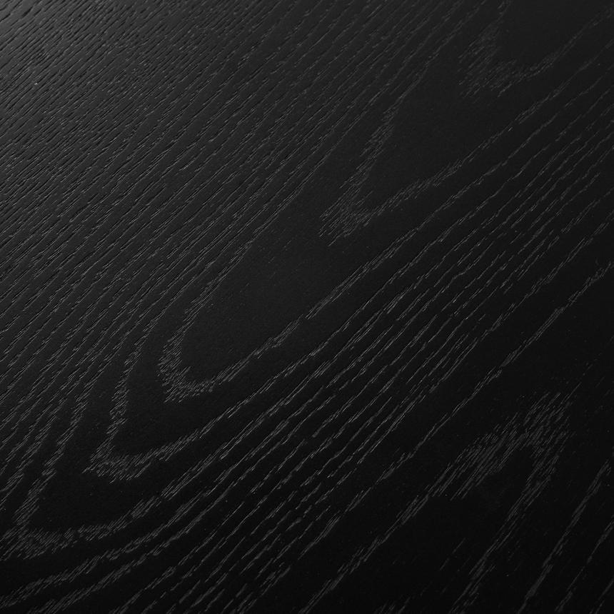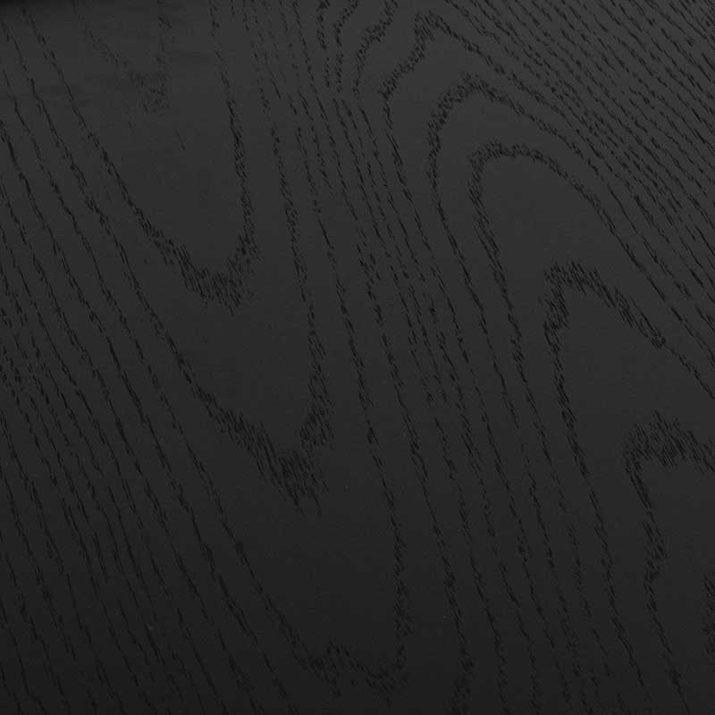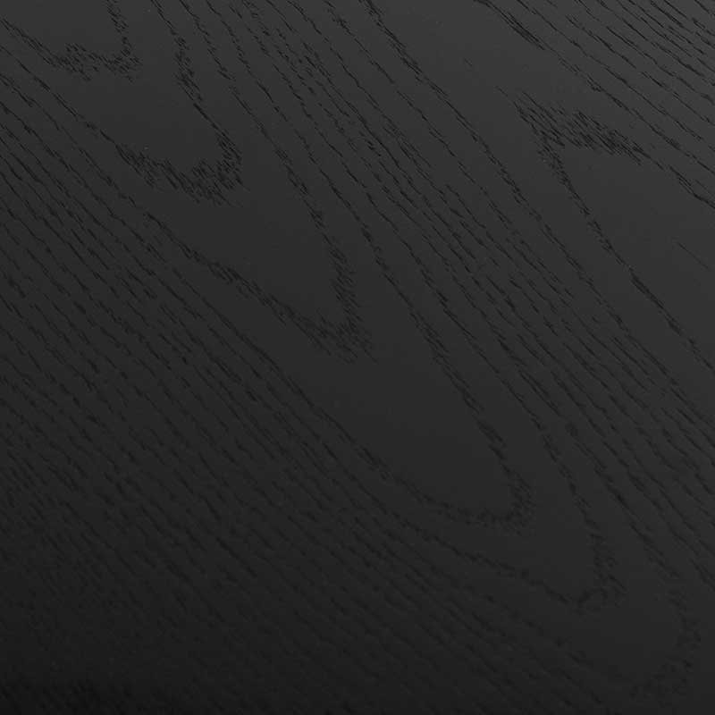 Engineered wood and black oak veneer construction Features E1 standard paneling Round table top in a wooden black finish Tri-base built in a wide rectangular silhouette Product is flat packed and requires two-person assembly