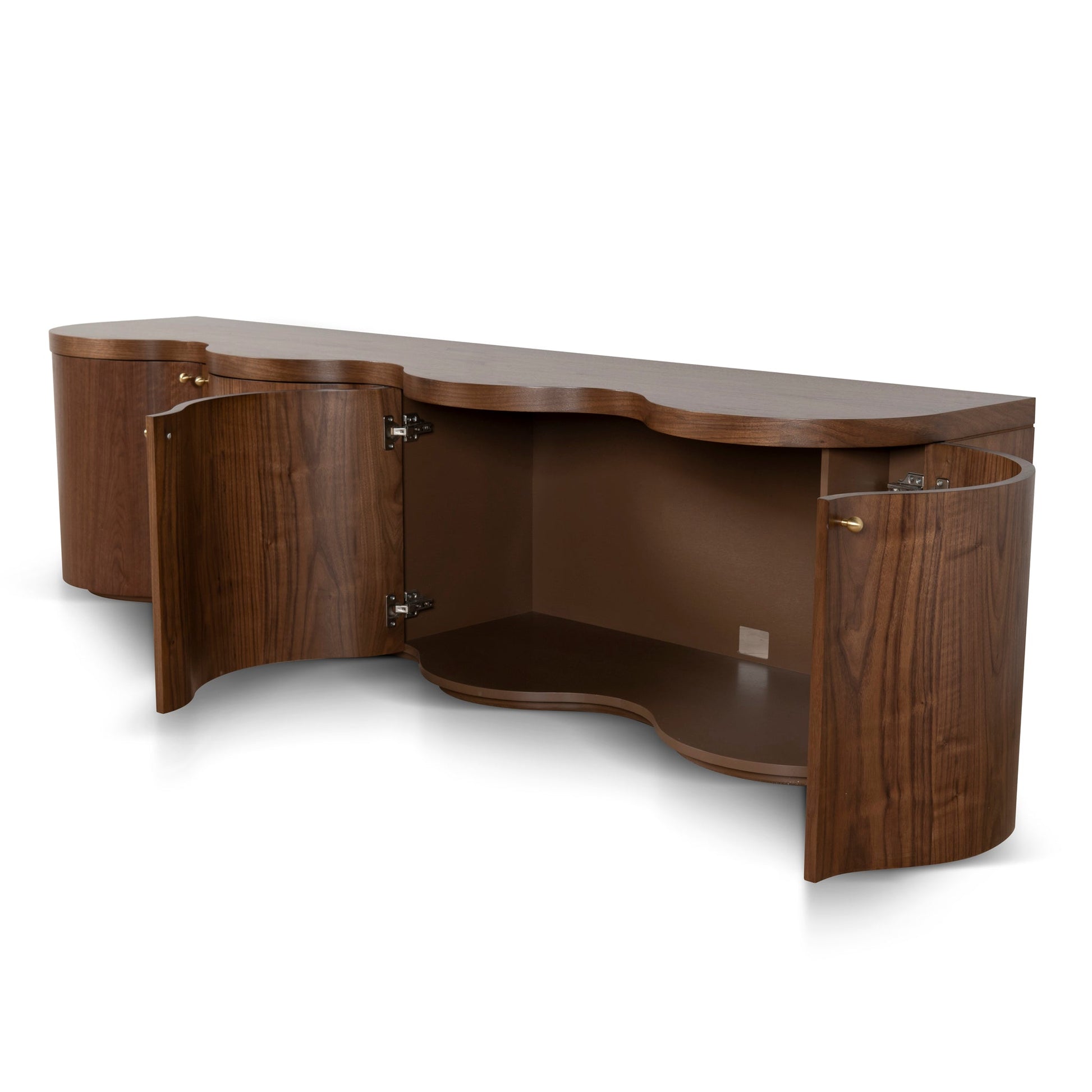 This 2.15m Entertainment unit in light walnut brings together a sleek, minimalist design with functional storage, making it the perfect choice for any living room. The light walnut finish and brass handles add a touch of elegance, seamlessly fitting into a variety of interiors. Upgrade your entertainment area with this stylish and practical TV console, designed to blend both aesthetics and functionality effortlessly.