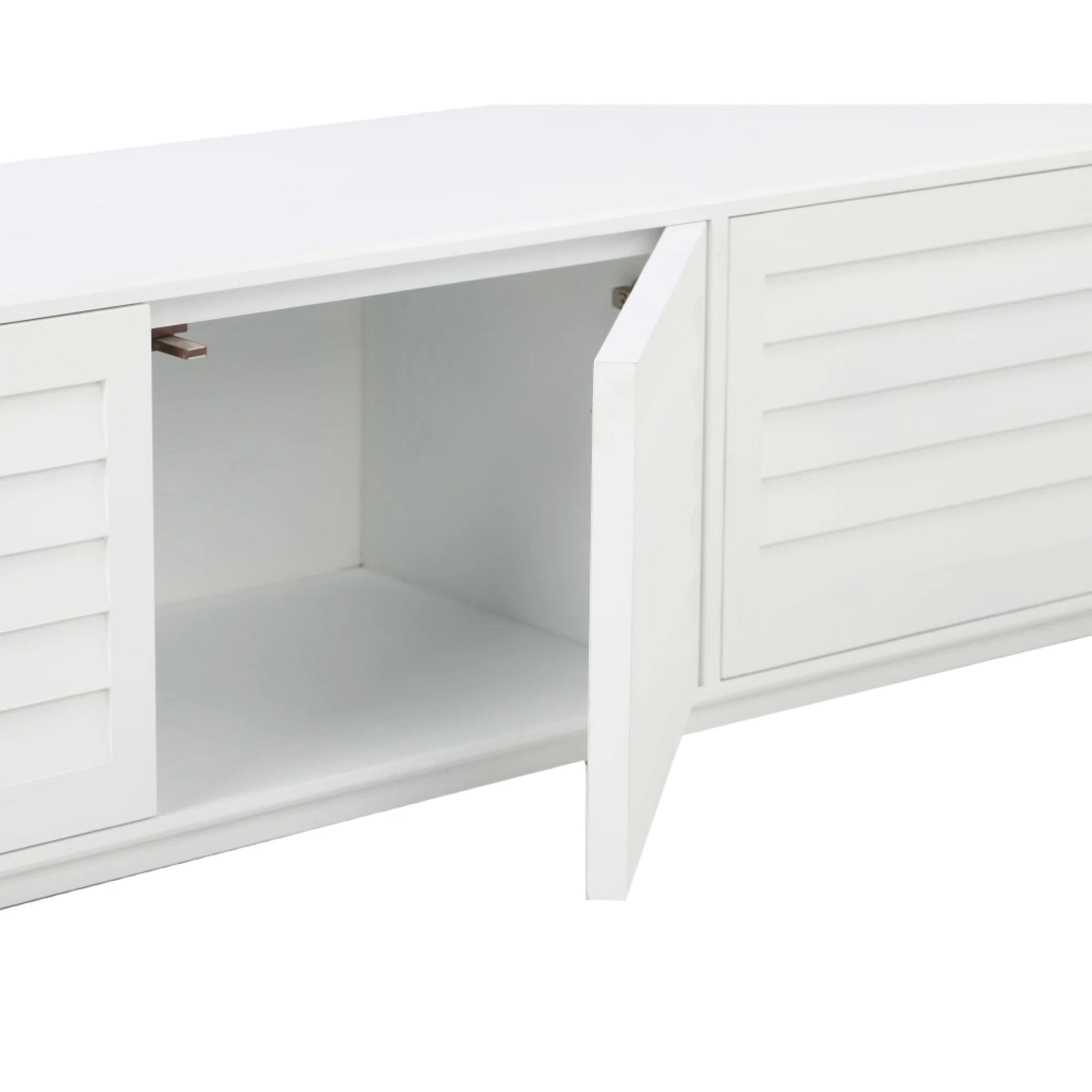 The 2.2m Elm TV entertainment unit combines minimalist elegance with functional design. Featuring horizontal slatted doors and a sleek white finish, this unit offers subtle texture and visual appeal while providing ample storage for your media essentials.