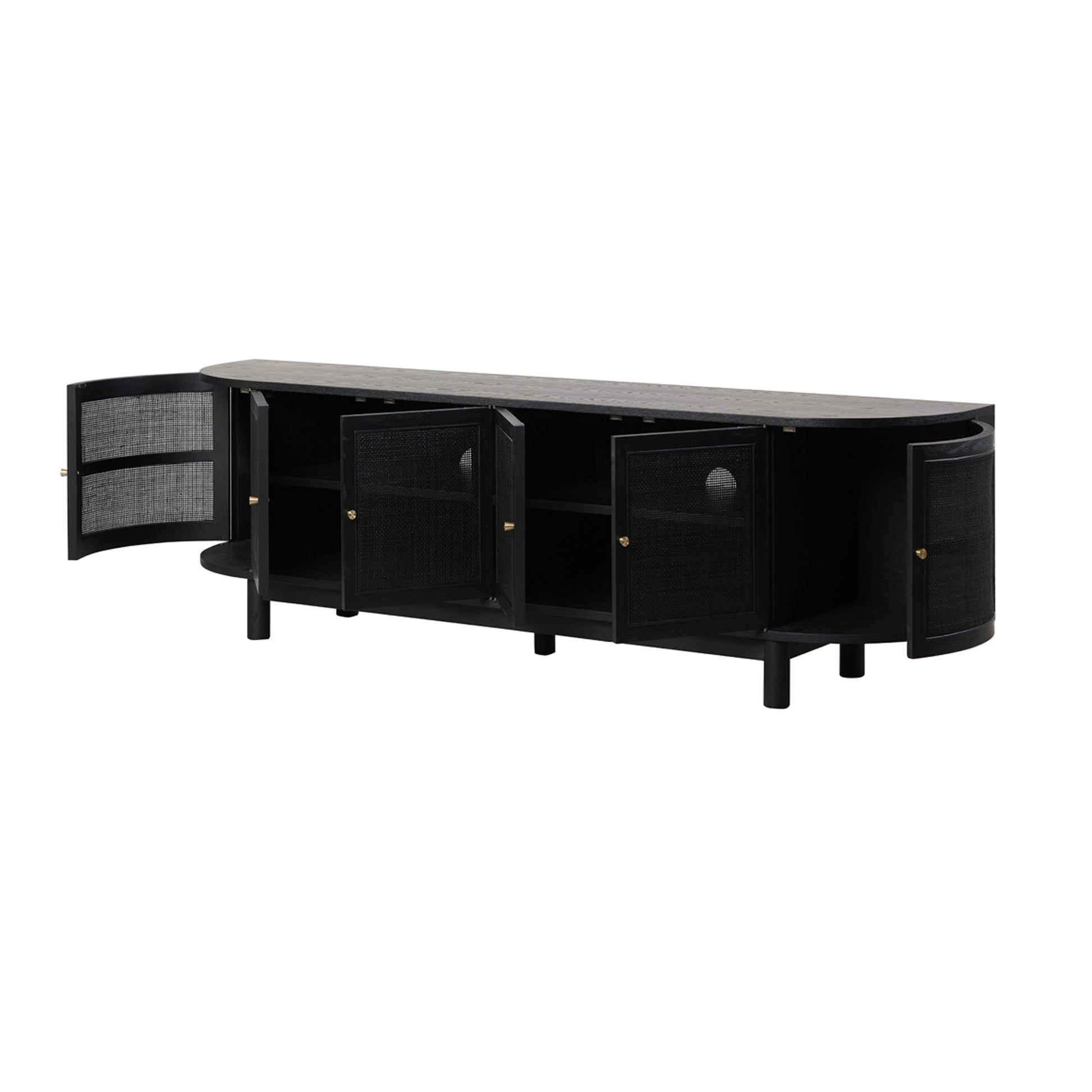 2.2m Rattan Doors TV Entertainment Unit - Full Black