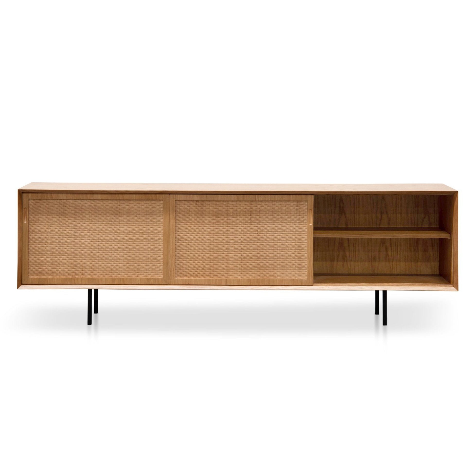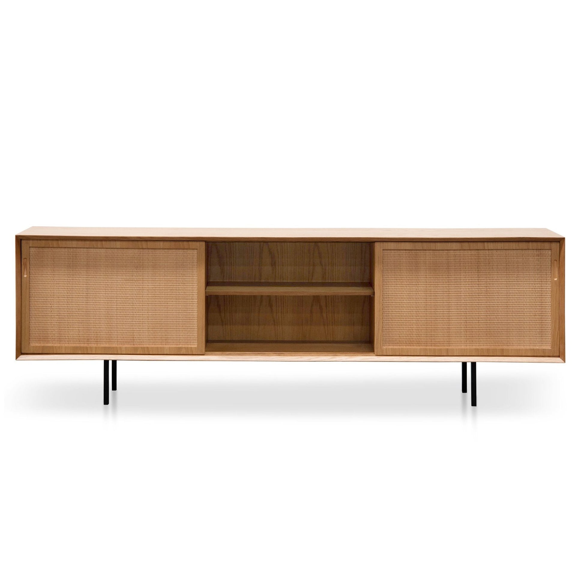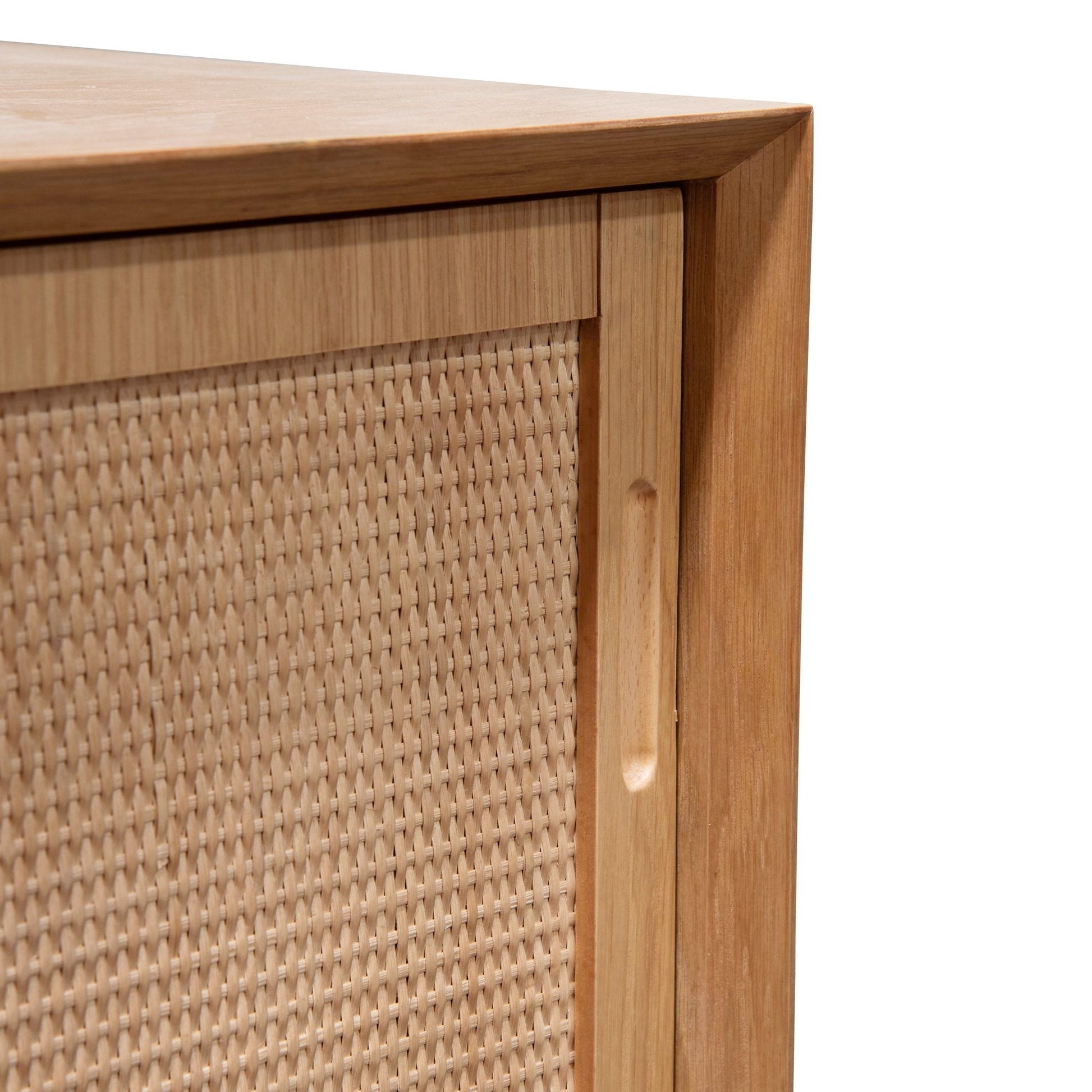 Elevate your living room with the timeless charm of the 2.2m TV unit - natural. The natural wood veneer finish and rattan door accents deliver a perfect balance of contemporary style and raw elegance. Designed with spacious storage, this unit keeps your entertainment area organised while adding warmth and sophistication to your space.