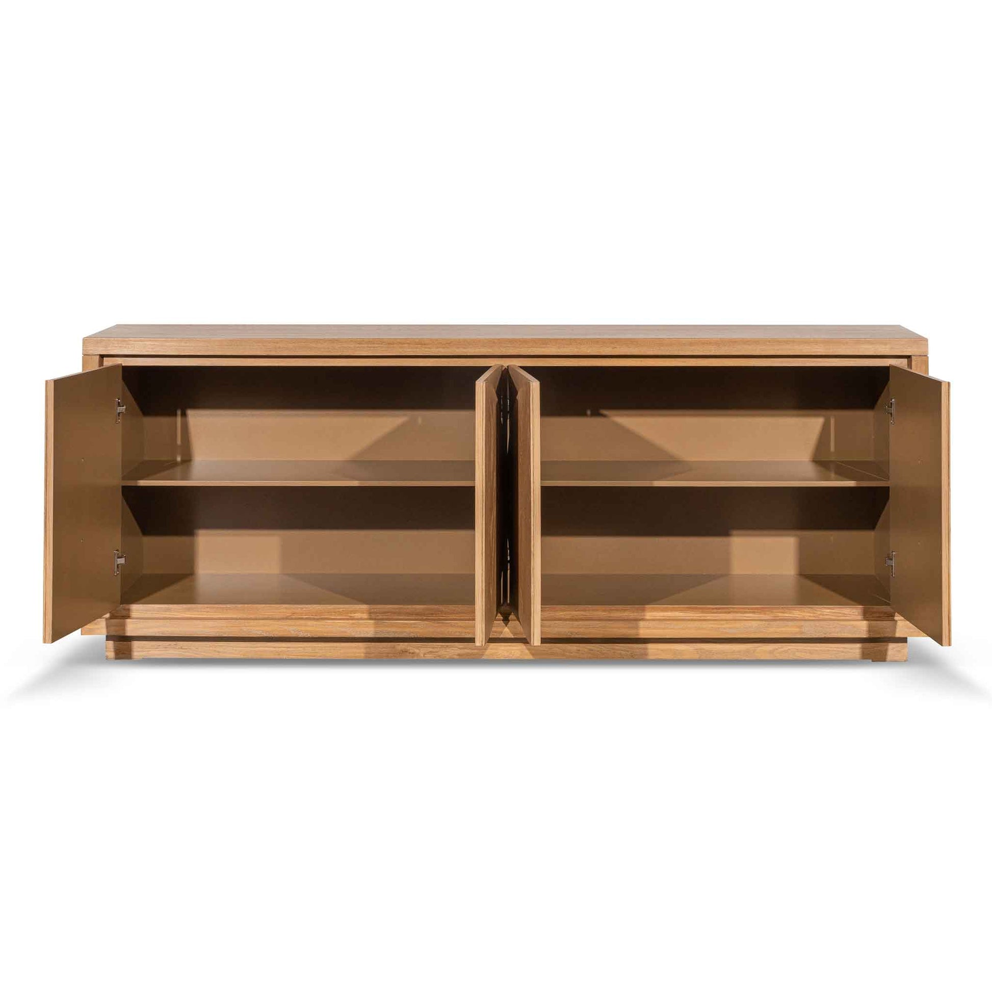 Combining sophisticated form with ample function, the 2m Buffet Unit - Dusty Oak offers a stylish and easy solution to your organisational and storage needs. The superior craftsmanship, featuring beautiful half-moon handles and a wide, durable body, offers a stable and timeless design that will last in your home. Explore our diverse range of natural buffet units for your space.