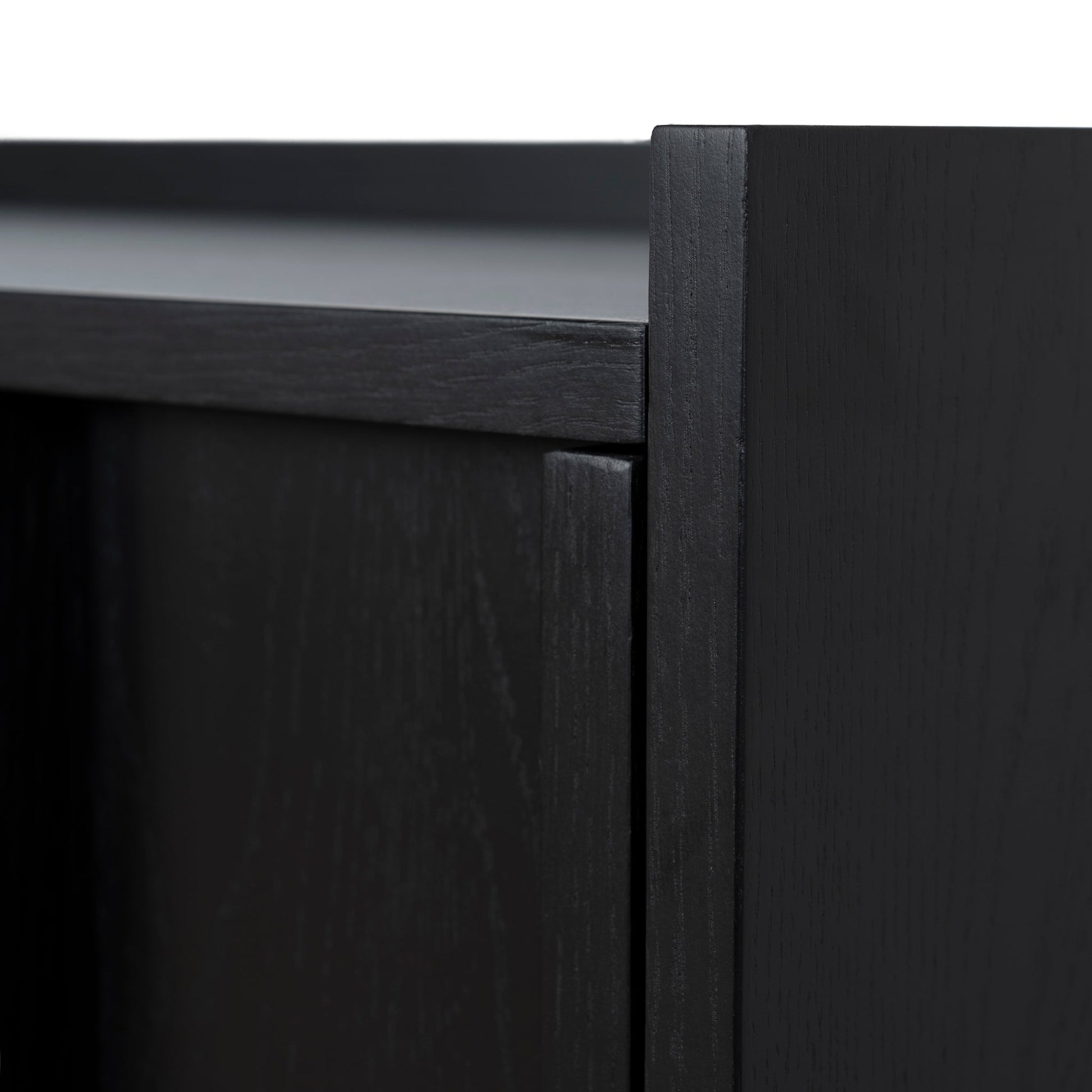 What sets the 2m Sideboard Unit in Full Black apart is its strong architectural character, subtle vertical paneling adds rhythm and texture to its exterior, giving it an understated yet commanding presence. The solid block design rests slightly elevated, balancing its sturdy profile with a sense of lightness and refinement.