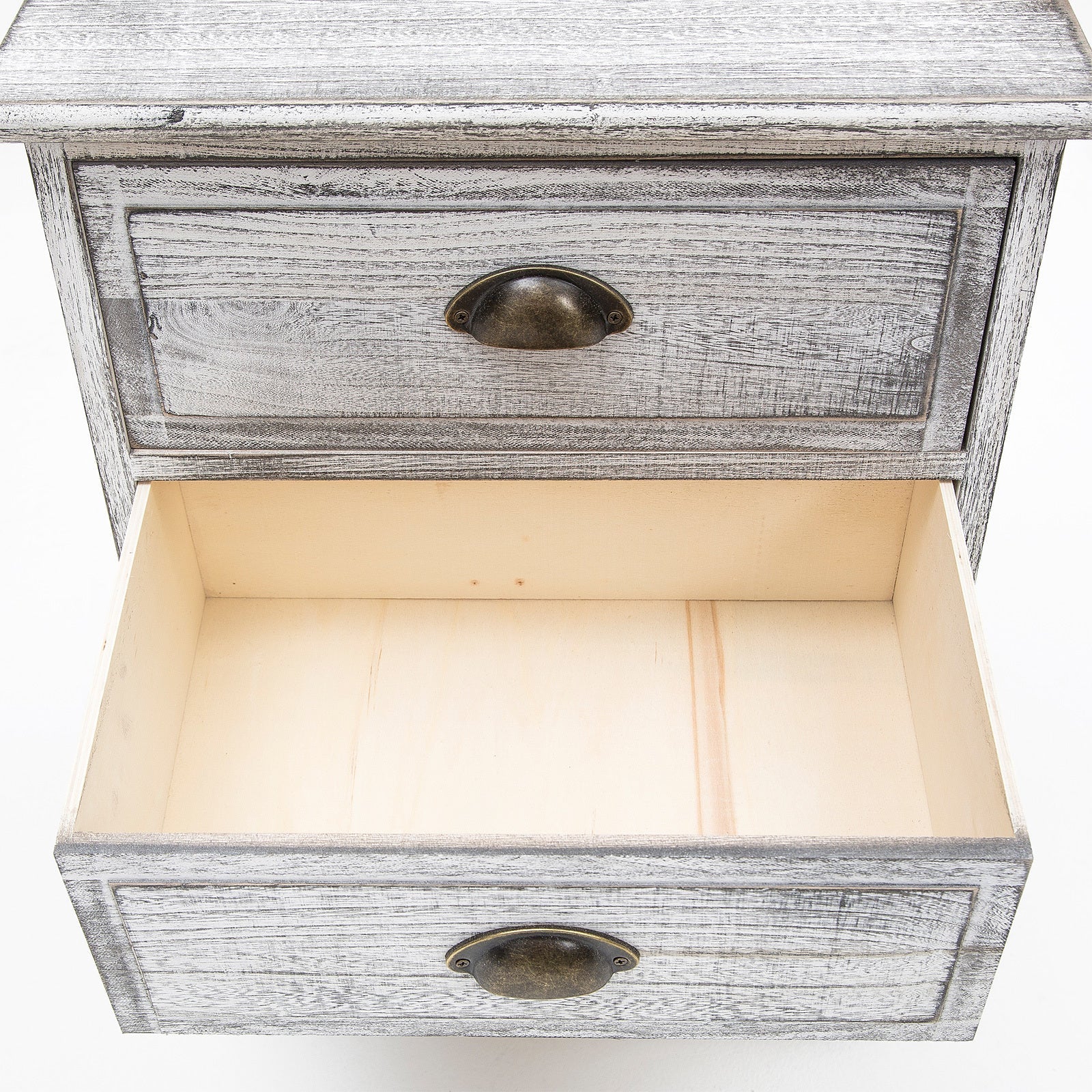 2X Bedside Table 3 Drawer Vintage Side Table Storage Cabinet Bedroom CLARA GREY