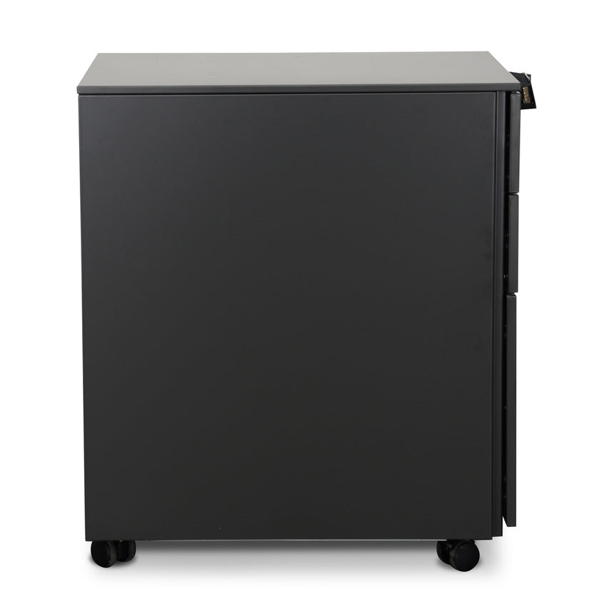 Features 2x personal drawers and 1x file cabinet for essential storage Strong metal body in a black powder coat finish Lockable feature with included for additional security Five-star castor wheels offer added mobility around the office Pen tray included Available in black or walnut 5- years manufacturer's warranty against defects Fully assembled