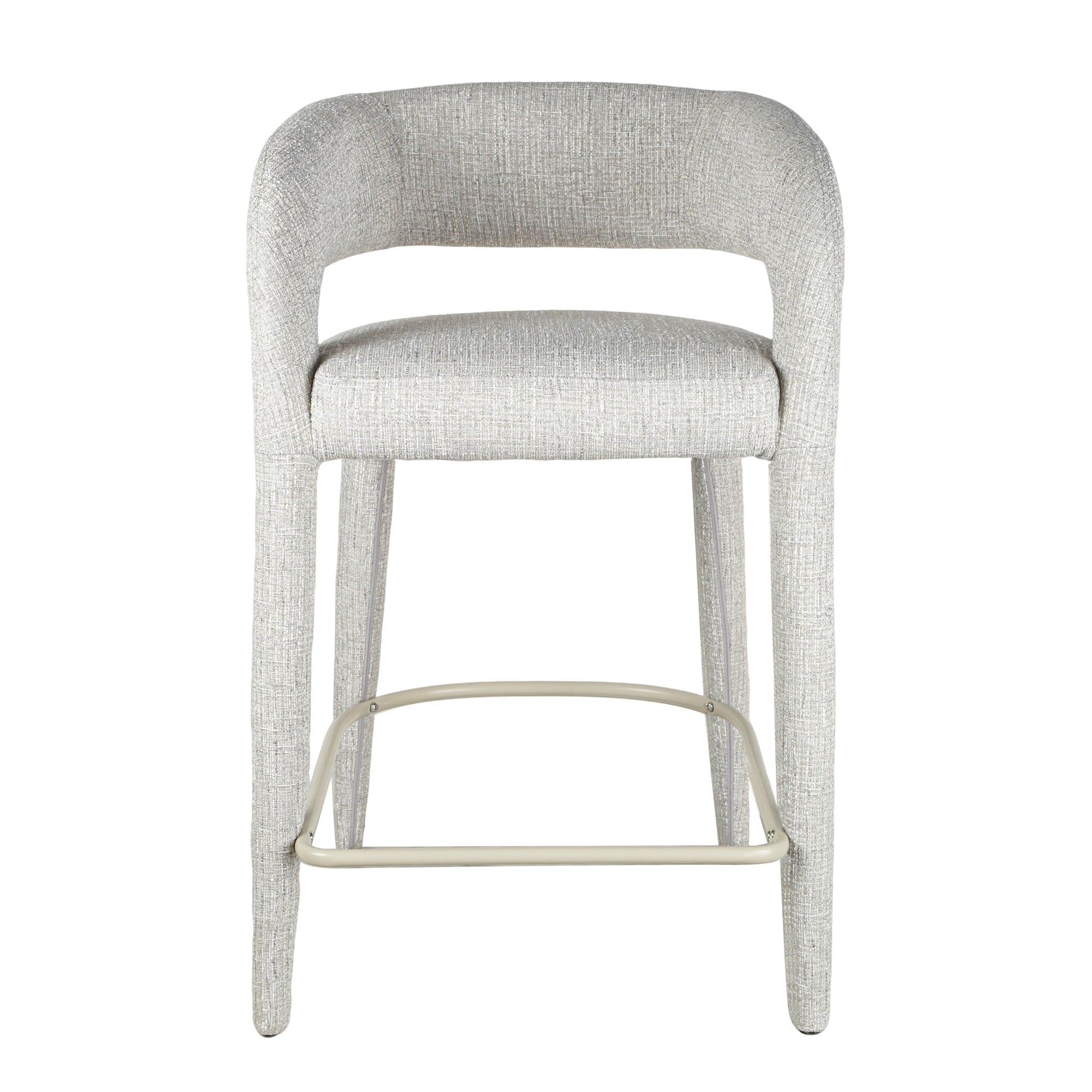 Chrome grey polyester upholstery Metal frame and legs Foam filling Soft-medium seat firmness Minimalist curved design Equipped with footrest Subtle low armrests Weight Capacity: 200 kg Product comes fully assembled