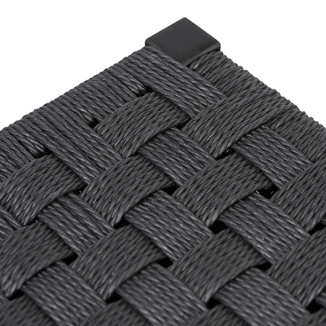 - Seat: Full black rattan seat crafted from natural paper cord