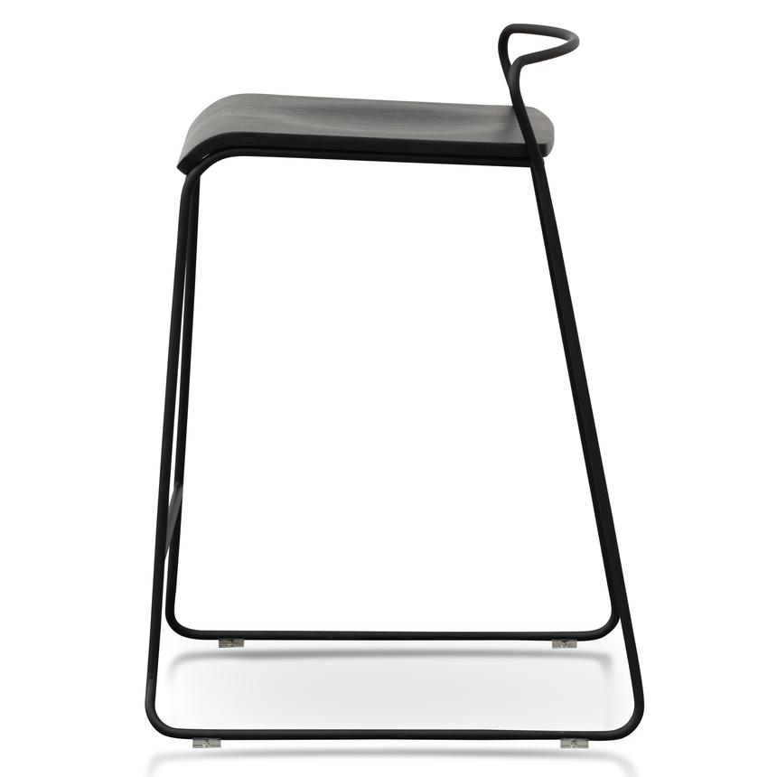 Plywood seat construction in full black Linear back and sled base legs in solid steel Deep wood grain textured detailing Footrest included for added comfort and support Feet protectors to prevent product damage and slipping Fully assembled Note : Due to the nature of timber and veneer, any variations of wood grain and colour are not inconsistencies and should be appreciated.