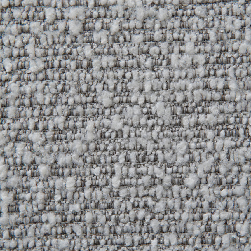 Silver grey polyester boucle Stainless steel construction Brushed black finish Backless circular foam seat Footrest for comfort Pedestal base Weight Capacity: 100 kg Product comes fully assembled